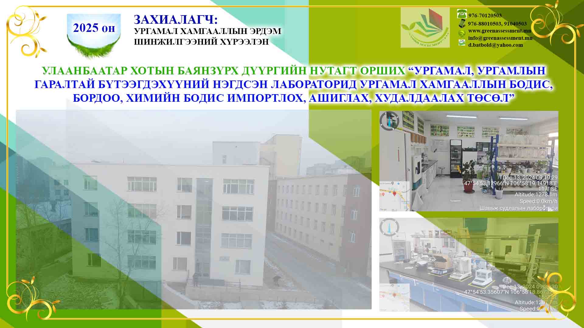 УРГАМАЛ, УРГАМЛЫН ГАРАЛТАЙ БҮТЭЭГДЭХҮҮНИЙ НЭГДСЭН ЛАБОРАТОРИД УРГАМАЛ ХАМГААЛЛЫН БОДИС, БОРДОО, ХИМИЙН БОДИС ИМПОРТЛОХ, АШИГЛАХ, ХУДАЛДААЛАХ ТӨСӨЛ |