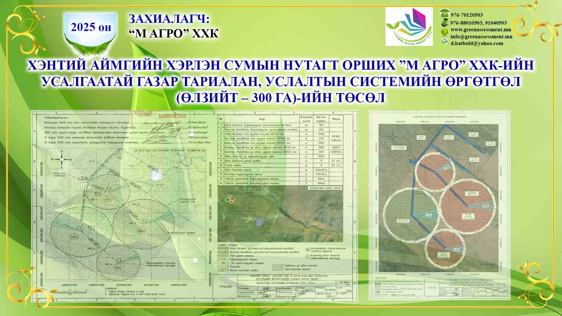 УСАЛГААТАЙ ГАЗАР ТАРИАЛАН, УСЛАЛТЫН СИСТЕМИЙН ӨРГӨТГӨЛ (ӨЛЗИЙТ – 300 ГА)-ИЙН ТӨСӨЛ |