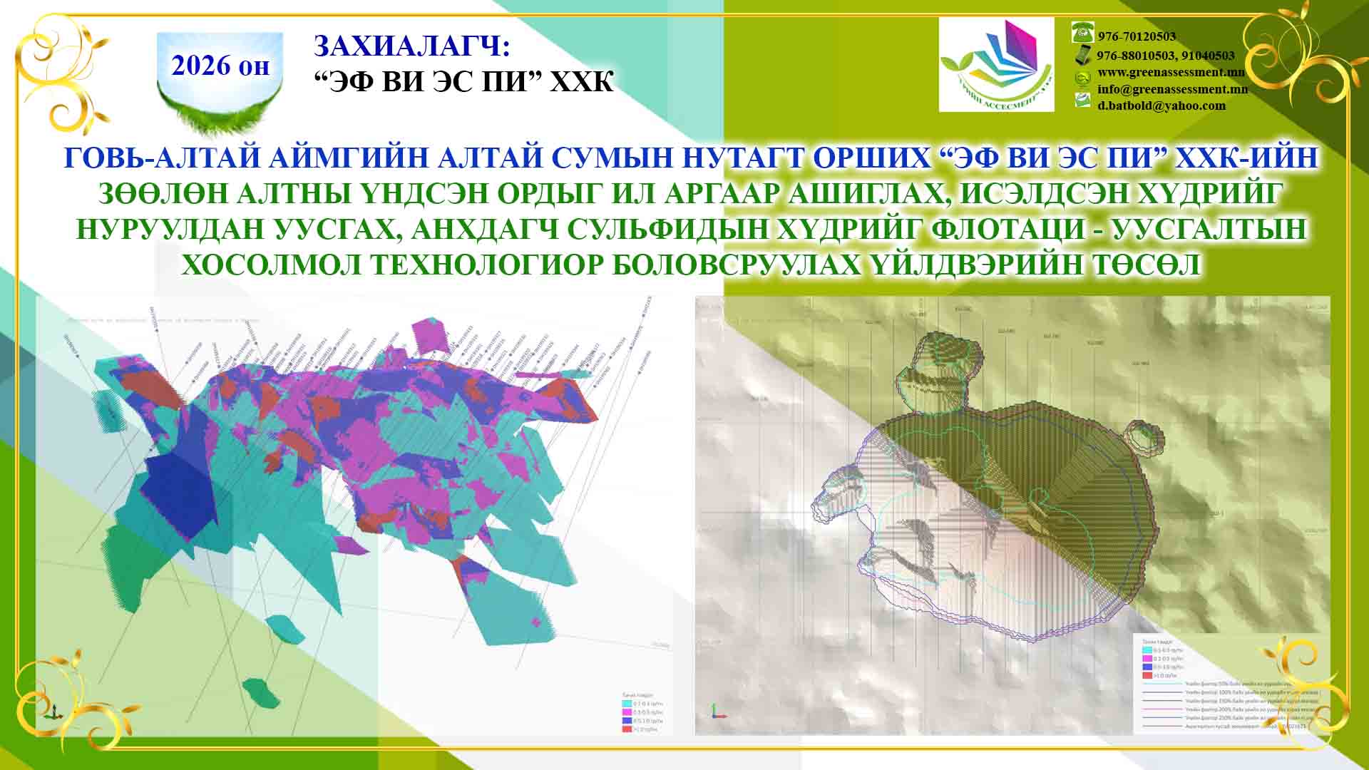 ЗӨӨЛӨН АЛТНЫ ҮНДСЭН ОРДЫГ ИЛ АРГААР АШИГЛАХ, ИСЭЛДСЭН ХҮДРИЙГ НУРУУЛДАН УУСГАХ, АНХДАГЧ СУЛЬФИДЫН ХҮДРИЙГ ФЛОТАЦИ - УУСГАЛТЫН ХОСОЛМОЛ ТЕХНОЛОГИОР БОЛОВСРУУЛАХ ҮЙЛДВЭРИЙН ТӨСӨЛ |