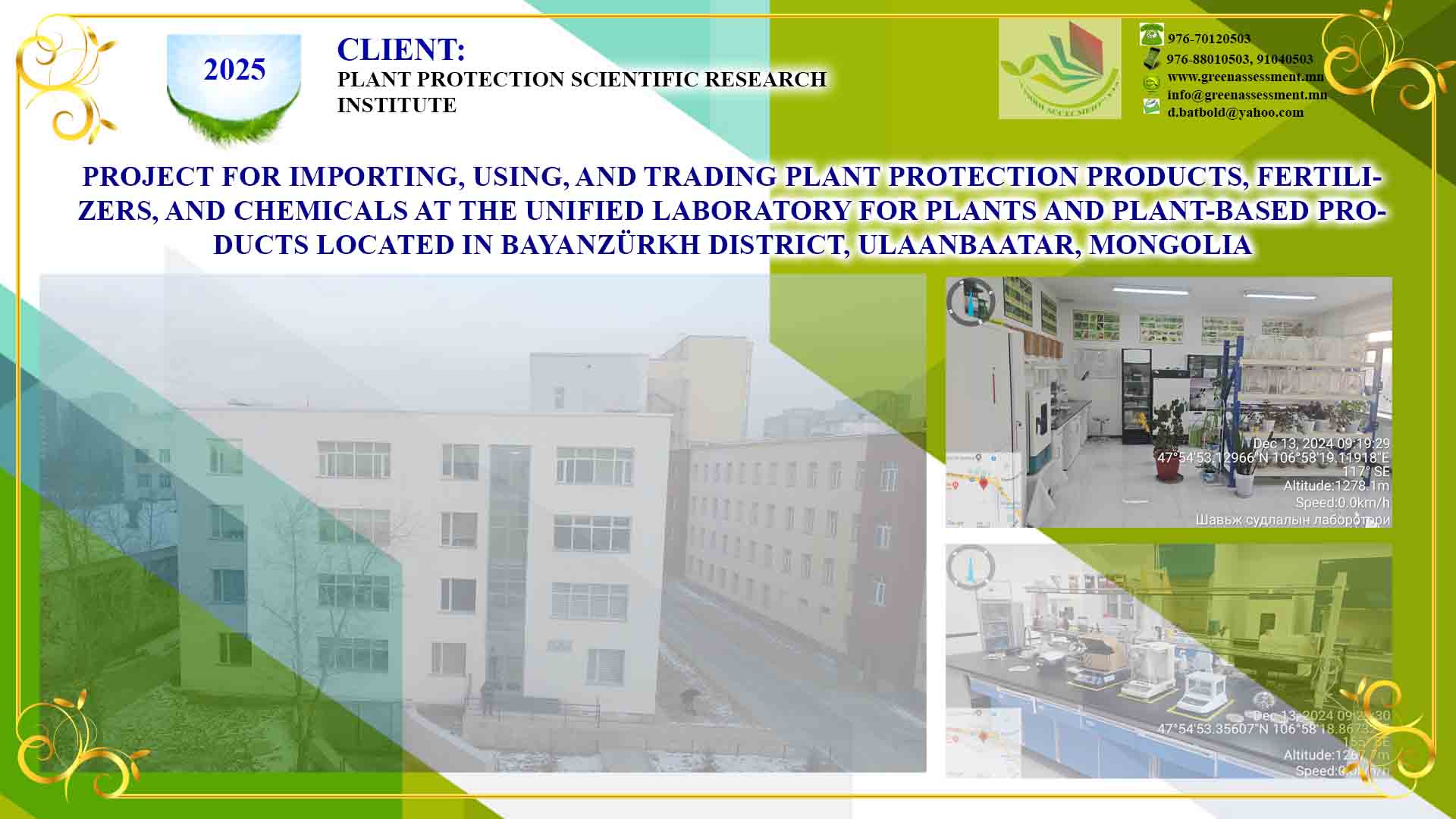 9 PROJECT ON IMPORTING, USING, AND TRADING PLANT PROTECTION PRODUCTS, FERTILIZERS, AND CHEMICALS AT THE UNIFIED LABORATORY FOR PLANTS AND PLANT-BASED PRODUCTS PLANT PROTECTION SCIENTIFIC RESEARCH INSTITUTE KHOROO 13, BAYANZURKH DISTRICT, ULAANBAATAR 2025-01-15 ХАРАХ