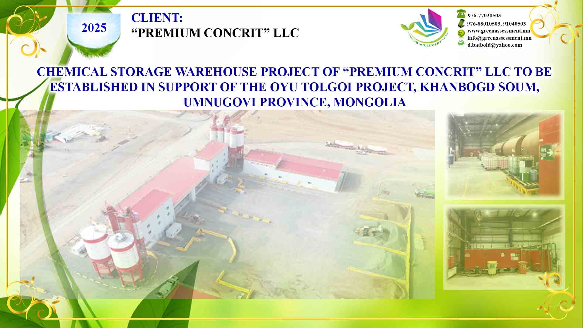 10 CHEMICAL STORAGE WAREHOUSE PROJECT “PREMIUM CONCRIT” LLC KHANBOGD SOUM, UMNUGOVI PROVINCE, OYU TOLGOI PROJECT, MONGOLIA 2025-01-15 ХАРАХ