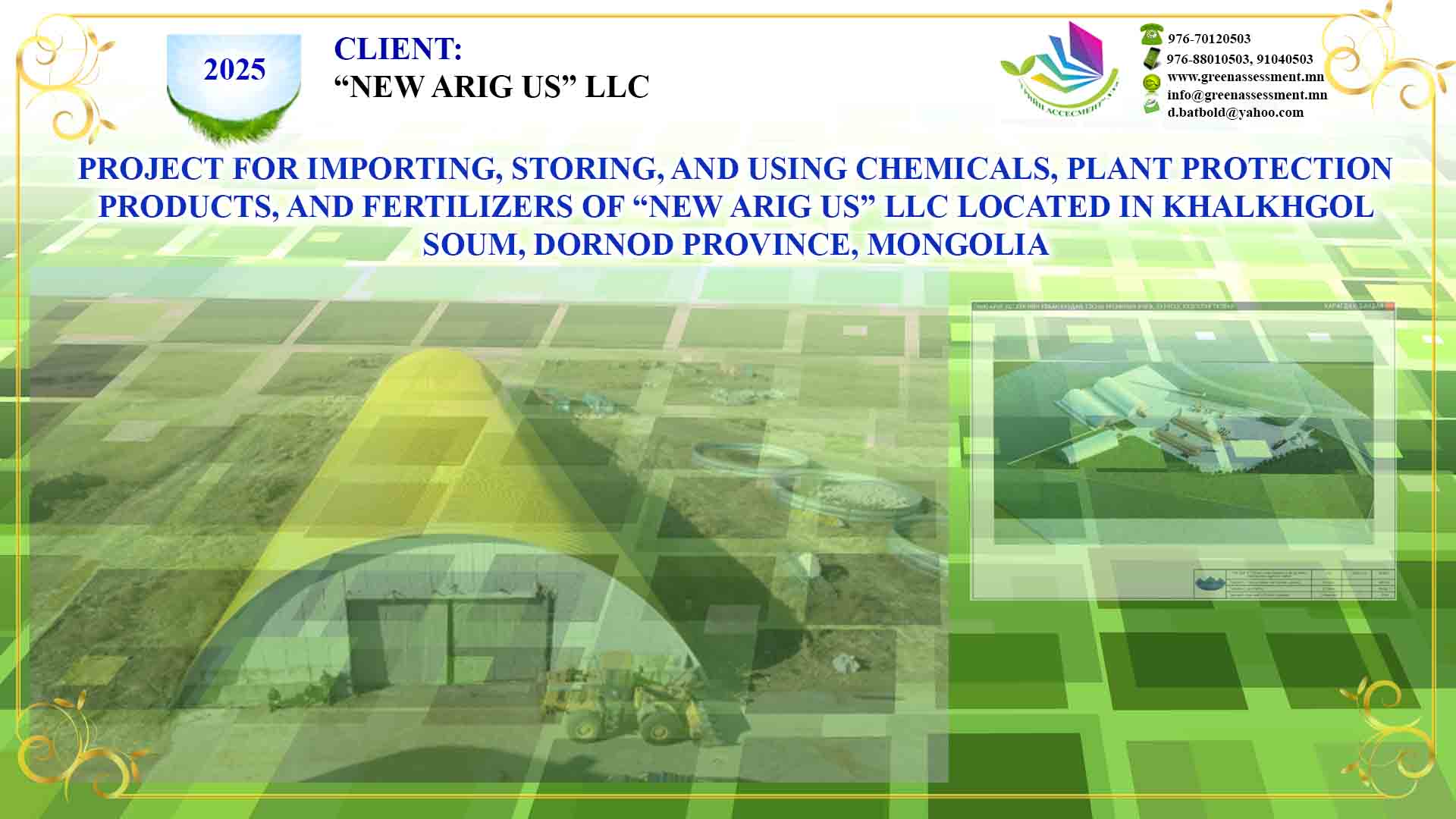 8 PROJECT FOR IMPORTING, STORING, AND USING CHEMICALS, PLANT PROTECTION PRODUCTS, AND FERTILIZERS “NEW ARIG US” LLC KHALKHGOL SOUM, DORNOD PROVINCE, MONGOLIA 2025-03-01 ХАРАХ