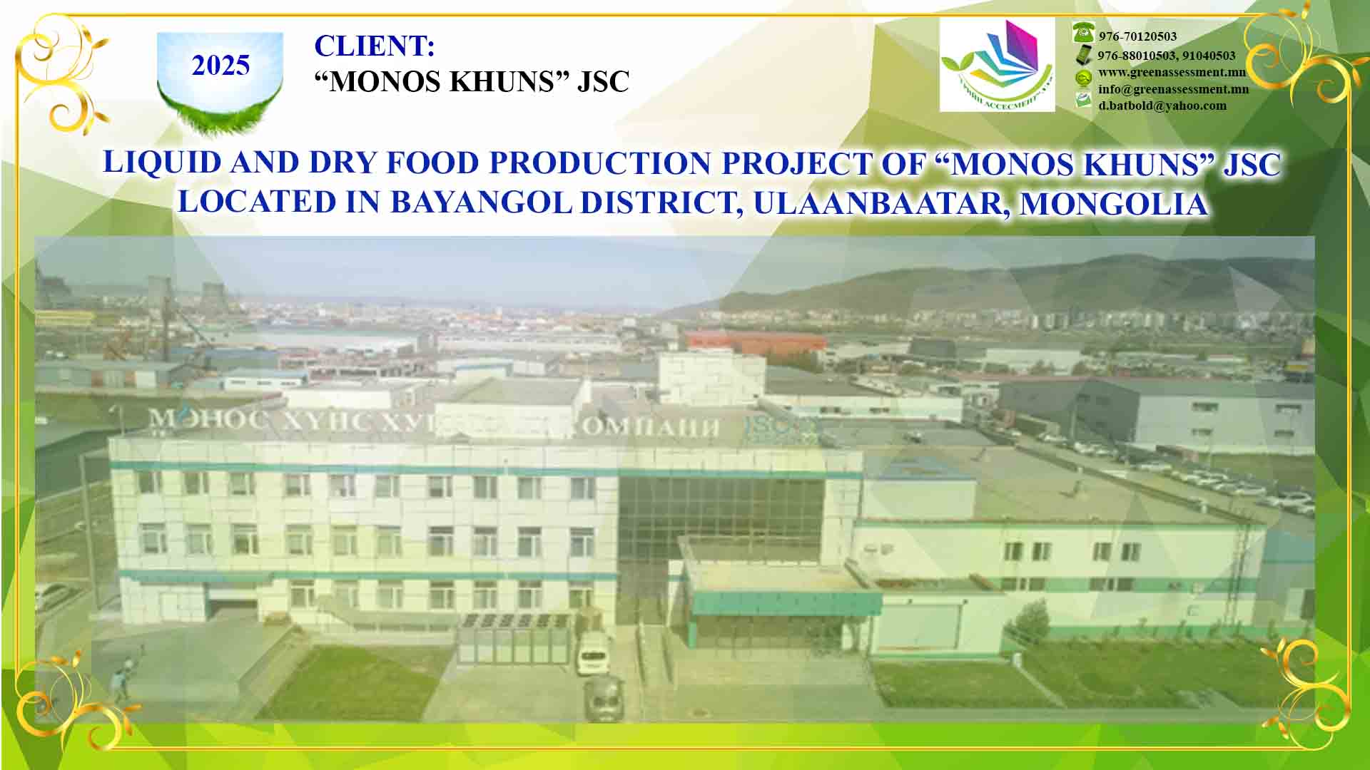 3 LIQUID AND DRY FOOD PRODUCTION PROJECT “MONOS KHUNS” JSC BAYANGOL DISTRICT, ULAANBAATAR, MONGOLIA 2025-08-01 ХАРАХ